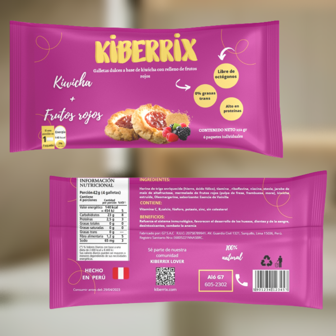 Kiberrix, galleta a base de kiwicha con relleno de frutos rojos